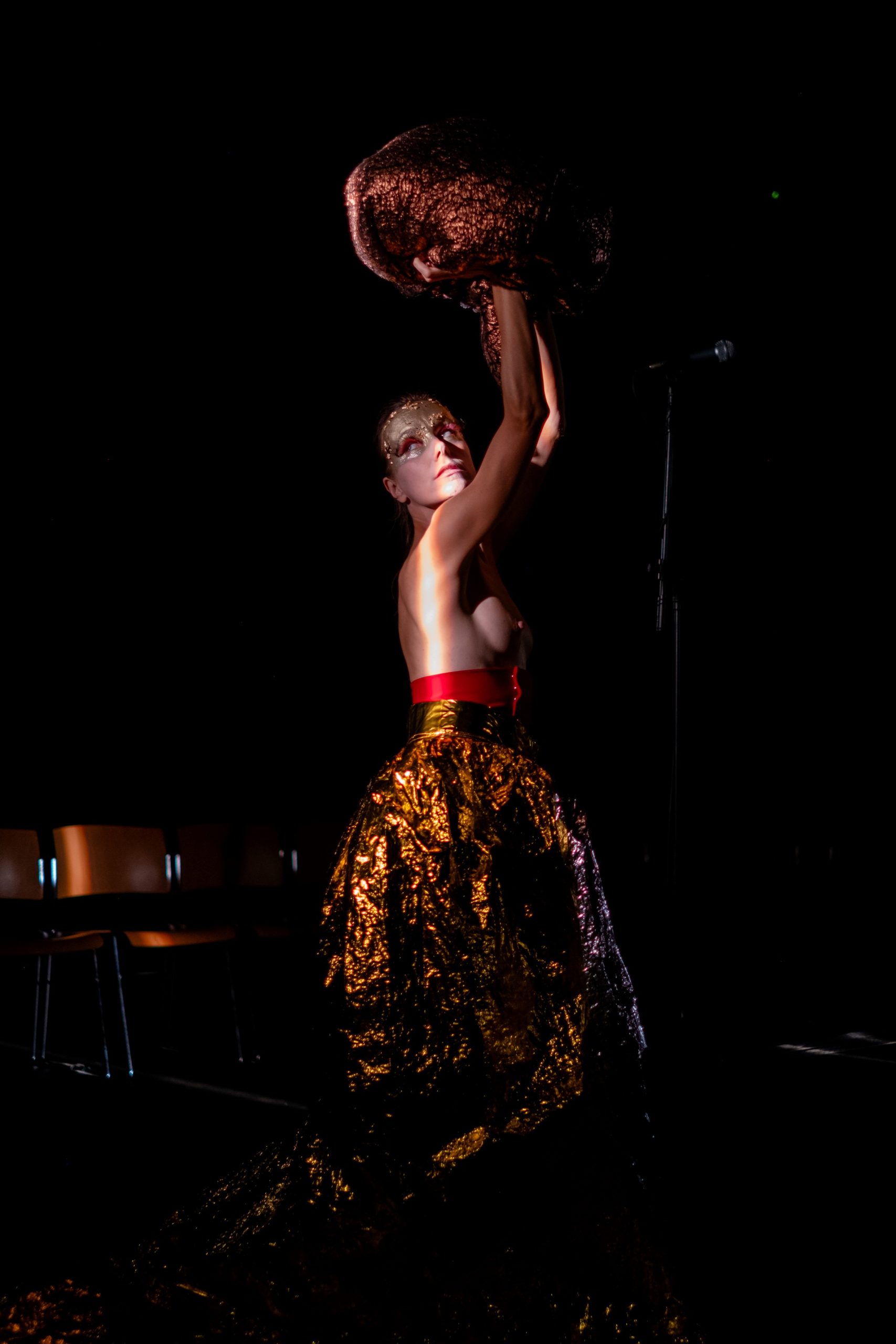 Medea veste sontuosamente i colori dell’oro e del nero, ma è immersa nel buio per accentuare la componente sonora della performance. Deve soprattutto essere ascoltata più che guardata?