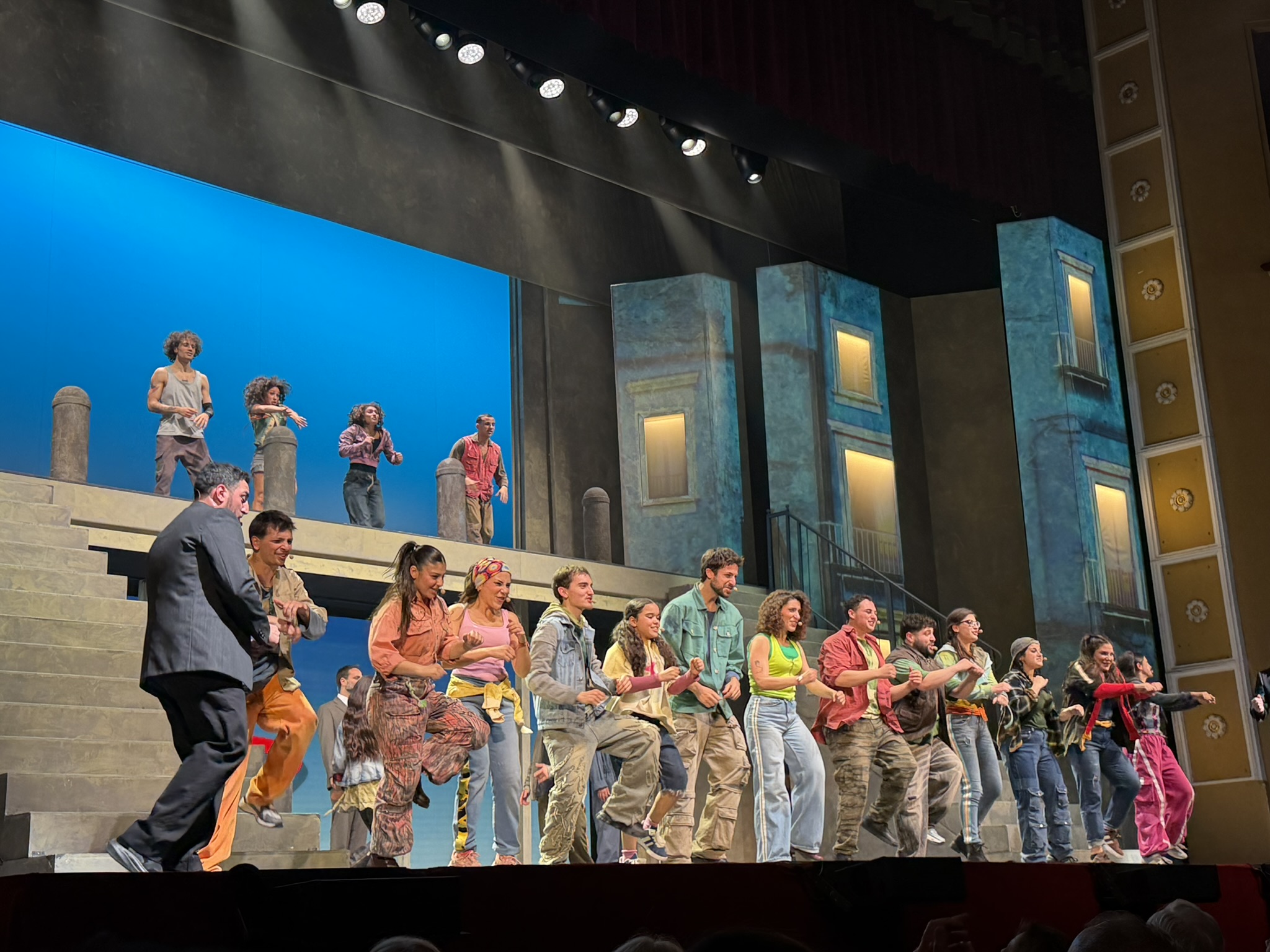La regia di Mattone si conferma solida e consapevole, capace di guidare un cast interamente rinnovato composto da giovani interpreti. Le coreografie di Gino Landi costruiscono l’ossatura ritmica dello spettacolo, mentre la scenografia essenziale — una struttura modulare con doppia scala — si trasforma con agilità in carcere, sala prove, vicoli e strade di Napoli.