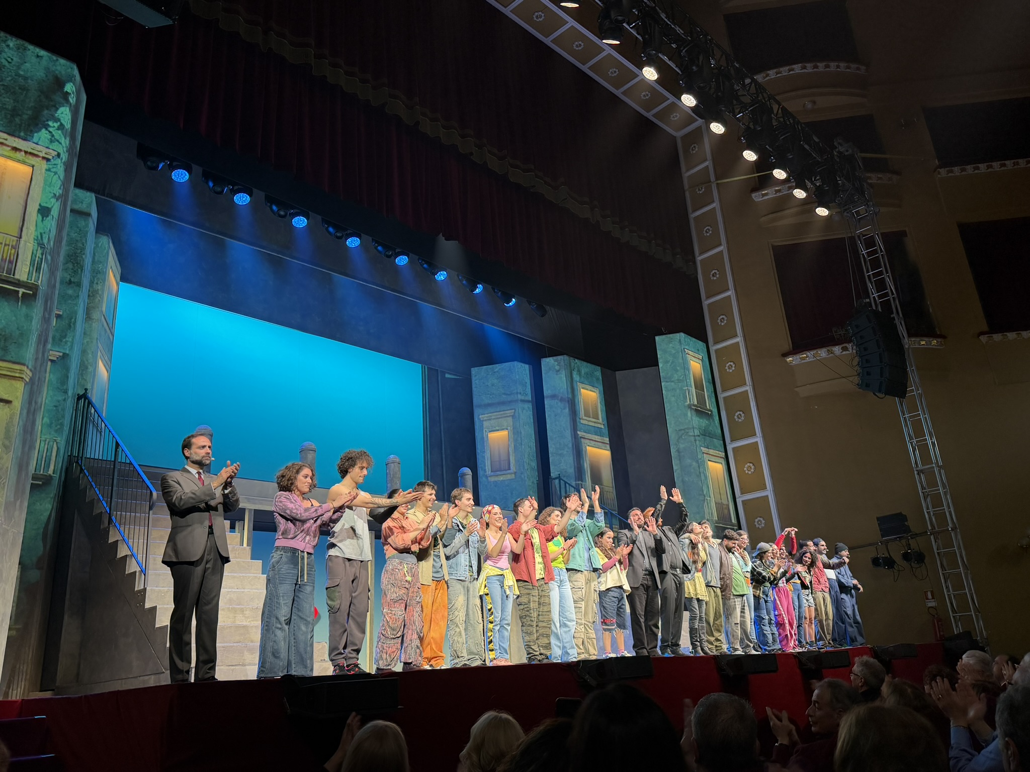 Uno dei momenti più intensi arriva nella scena della morte dell’educatore, evocata attraverso il dettaglio del colletto insanguinato: un’immagine secca e potentemente simbolica, che imprime una svolta emotiva al racconto. È un passaggio di forte impatto, subito seguito da una progressiva riapertura del tono scenico verso la dimensione corale e collettiva. Ne emerge un messaggio di fondo comunque ottimistico, che trova piena espressione nel medley finale: il pubblico, ormai completamente coinvolto, reagisce con entusiasmo crescente, fino a diventare parte attiva dello spettacolo, battendo le mani a tempo in una partecipazione quasi rituale.