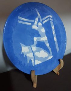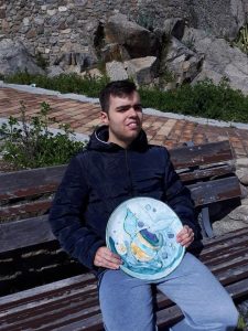La prima foto rappresenta Francesco con una sua creazione: Piatto di ceramica con paesaggio marino
